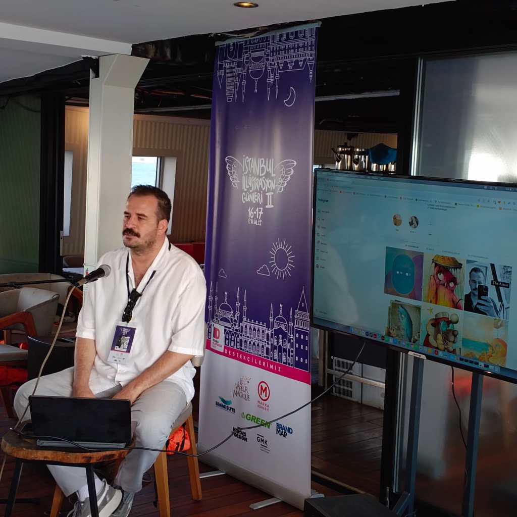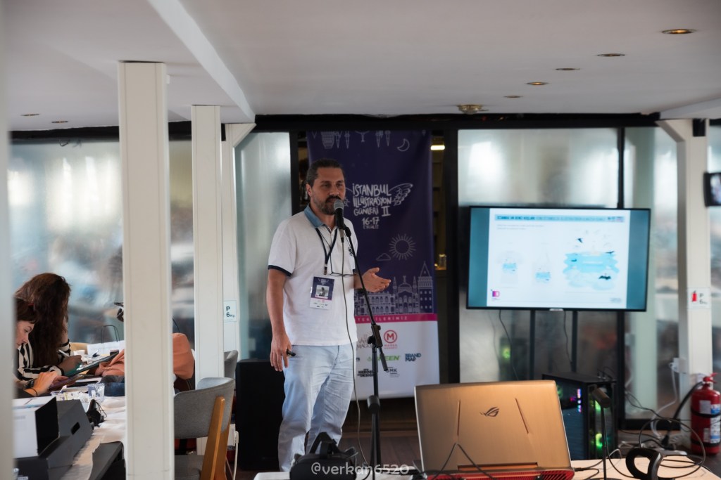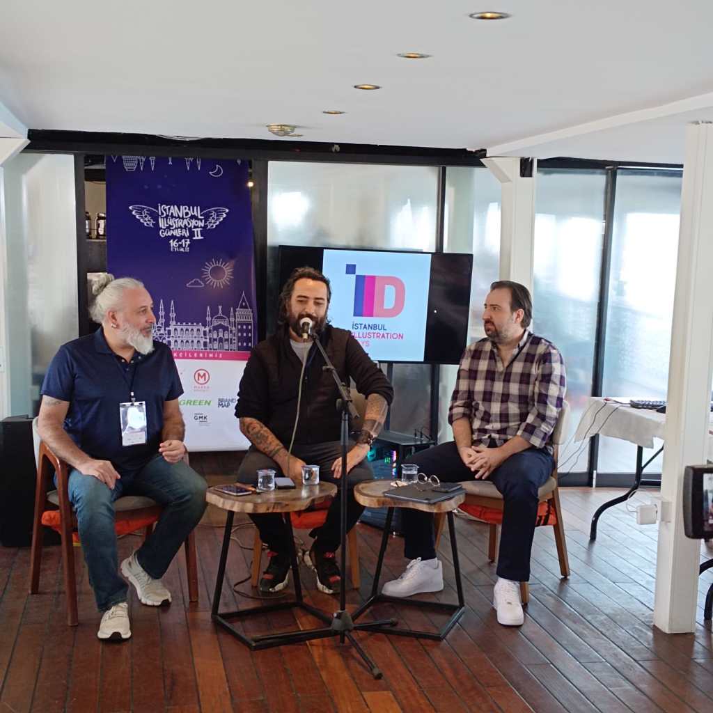 OTURUM: “Dijital Oyunlarda İllüstrasyon” ve “NFT Dijitalizm ve İllüstrasyonun Geleceği” UĞUR BATI’nın moderatörlüğünde SERDAR EKREM ŞİRİN ve DEVRİM DANYAL günümüz dünyası ve gündemdeki son teknolojik gelişmelerin, illüstrasyon alanları üzerinde etkisi ve yeni açılabilecek ufuklar hakkında bir oturum gerçekleştirdi. Özellikle dijital oyunlar ve NFT hakkında izleyicilerin ilgisine cevap veren bir oturum oldu.