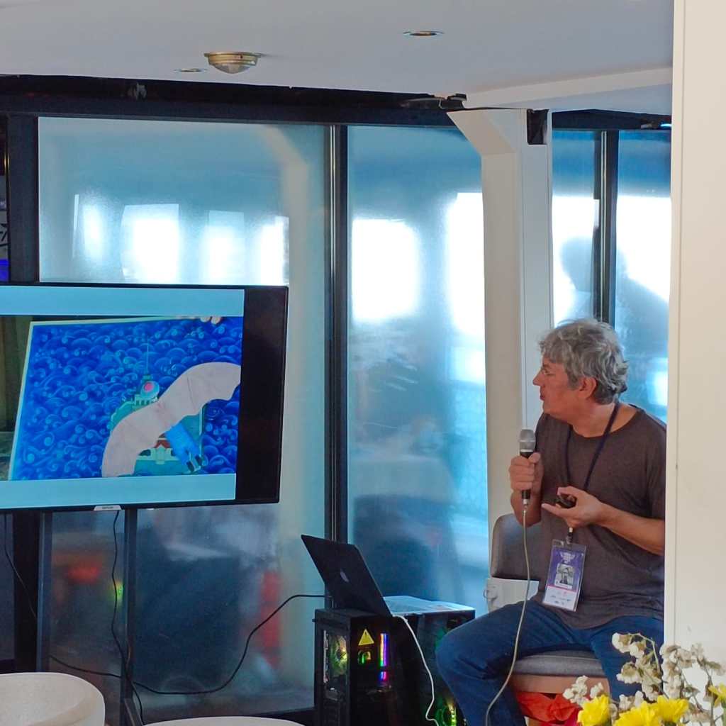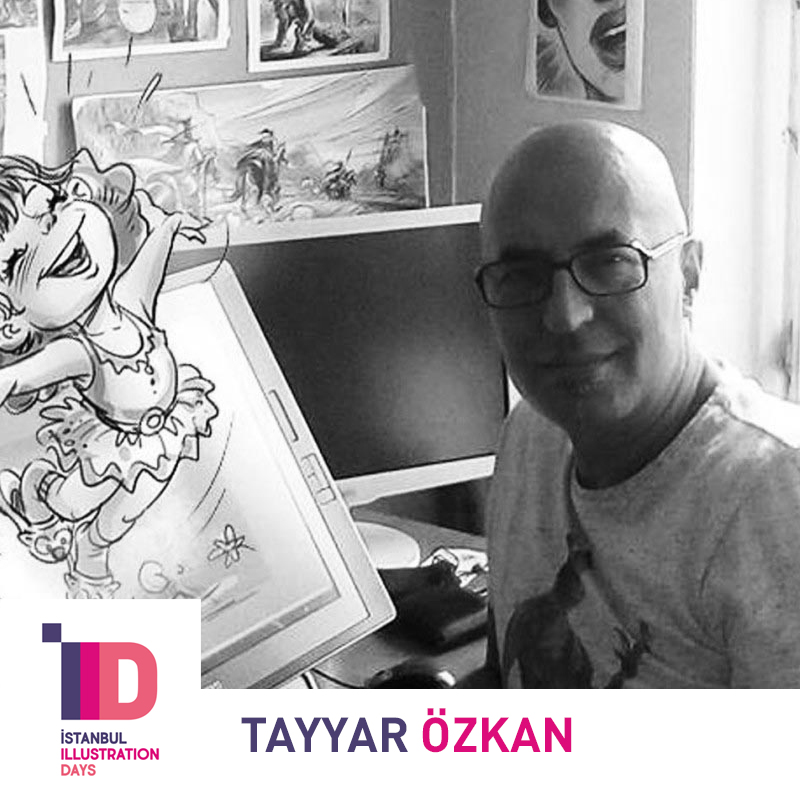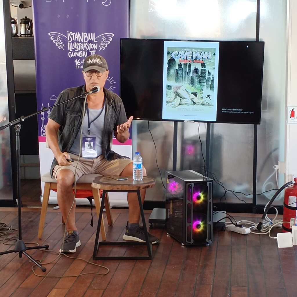 TAYYAR ÖZKAN “İllüstratöre Notlar, Profesyonel Yaşam” adlı sunumunda, Amerika, Çin ve Fransa gibi ülkelerdeki kendi profesyonel yolculuğu ve deneyimlerini aktardı. Başta dünyaca ünlü serisi Cave Man olmak üzere, pek çok çizgi roman, çocuk kitabı, ambalaj, illüstratif pattern (örüntü) ve editoryal illüstrasyon örneklerini izleyicilerle paylaştı.