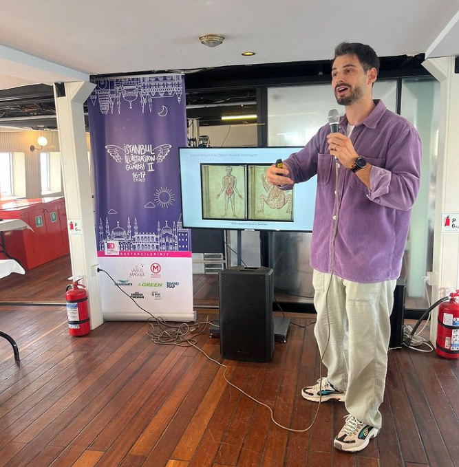 SEFA ERSAN KAYA “Görsel İletişim Aracı Olarak Medikal İllüstrasyon” başlıklı sunumunda, medikal illüstrasyonu geçmişten bugüne tarihi gelişimi içerisinde anlattı. Medikal illüstrasyonun gittikçe ilgi gören bir alan olduğun işaret etti.